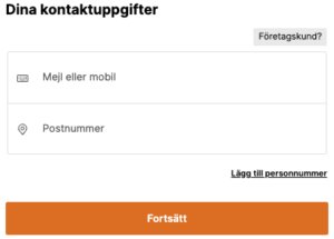 2. Ni får sedan upp ett fält som frågar efter personnummer. Ignorera detta och klicka nere i höger (grönmarkerade rutan) på fältet ”Företagskund”. Fyll i företagets organisationsnummer.
