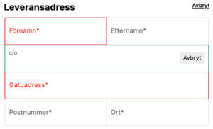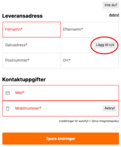 2. Du kommer nu vidare till sidan för personuppgifter. Klicka på “Lägg till c/o” och ange föreningens namn samt organisationsnummer i detta fält.