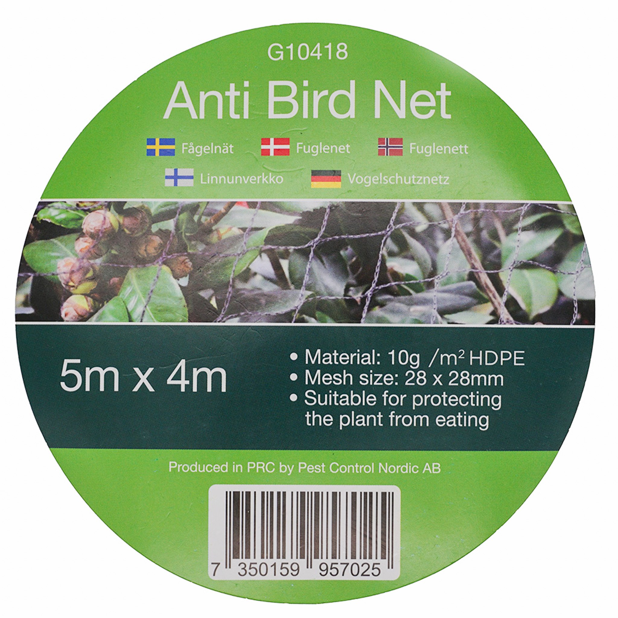 Detta premium fågelnät med måtten 4 x 5 meter är framtaget för att skydda fruktträd, bärbuskar, grönsaksland och andra odlingar från fåglar som annars riskerar att skada eller förstöra skörden. Nätet skapar en fysisk barriär som hindrar fåglar från att nå plantorna utan att skada dem, och kan även användas som skydd över exempelvis pallkragar, buskar och mindre träd.
