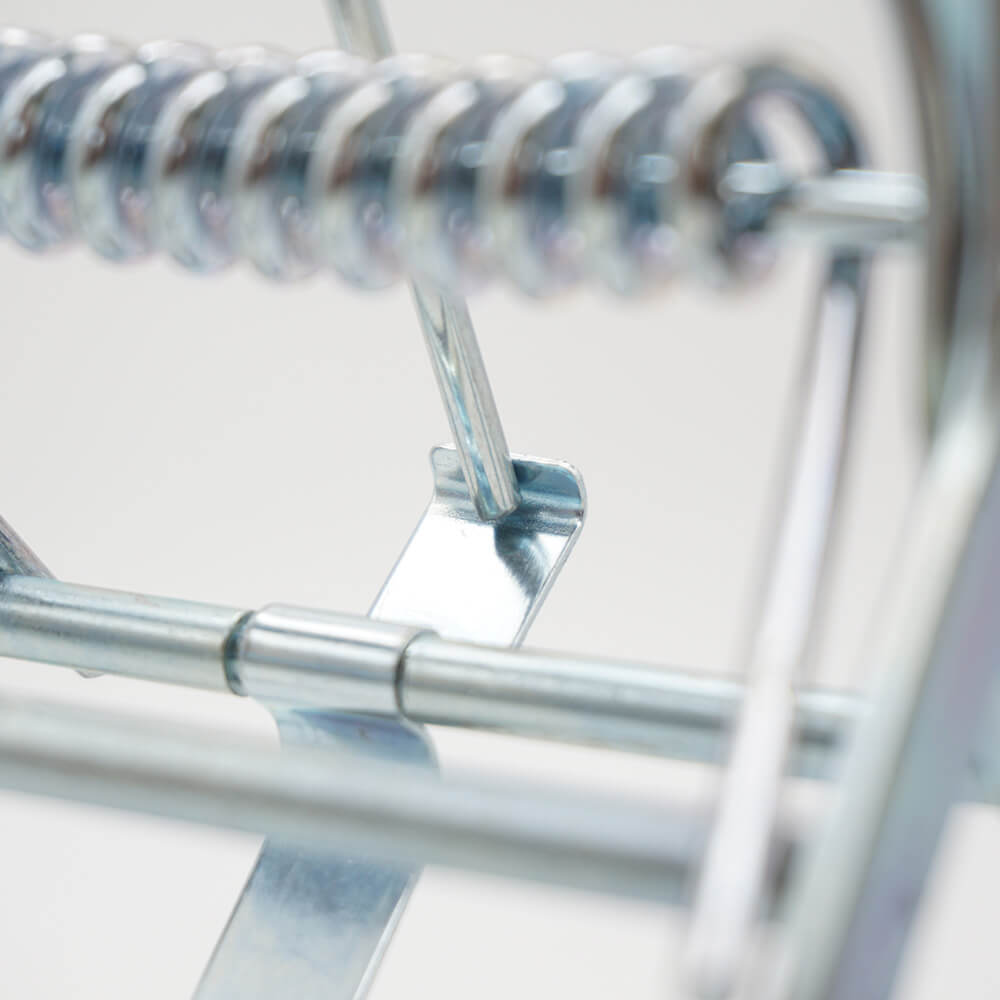 - Spänn fällan genom att pressa ihop handtagen och låsa den enligt fällans mekanism.