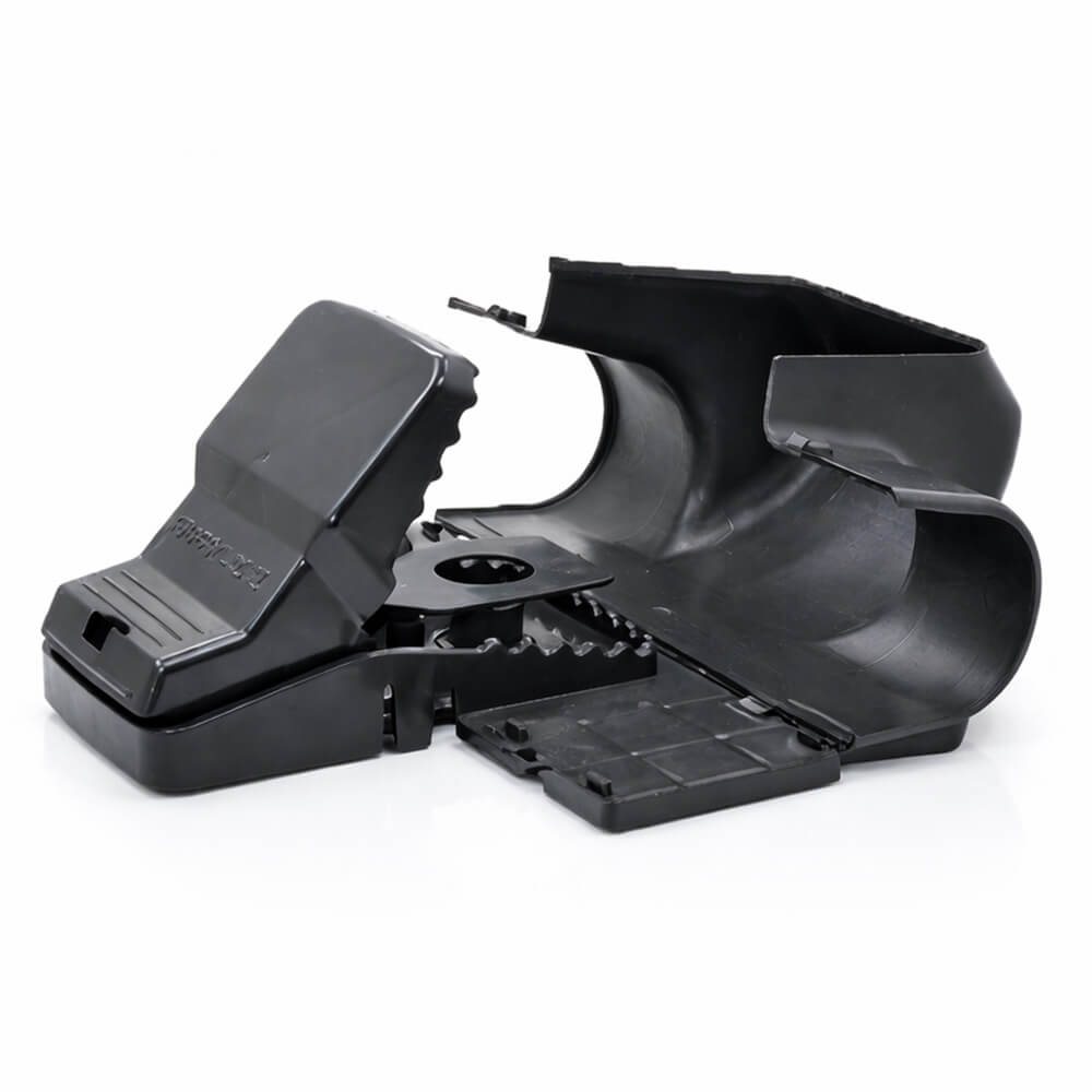 Denna råttfälla är framtagen för att bekämpa råttor effektivt i hemmamiljö och i andra utrymmen där gnagare rör sig. Den kraftfulla slagmekanismen avlivar snabbt och rent, utan kemikalier och utan att du behöver se eller röra fångsten. Råttor söker sig naturligt in i trånga gångar, och den slutna tunneldesignen utnyttjar detta beteende för att öka träffsäkerheten. Dessutom ger konstruktionen ett extra skyddslager – fällan blir svårare för barn och husdjur att komma åt, samtidigt som råttan styrs rätt mot mekanismen för en direkt och säker avlivning.