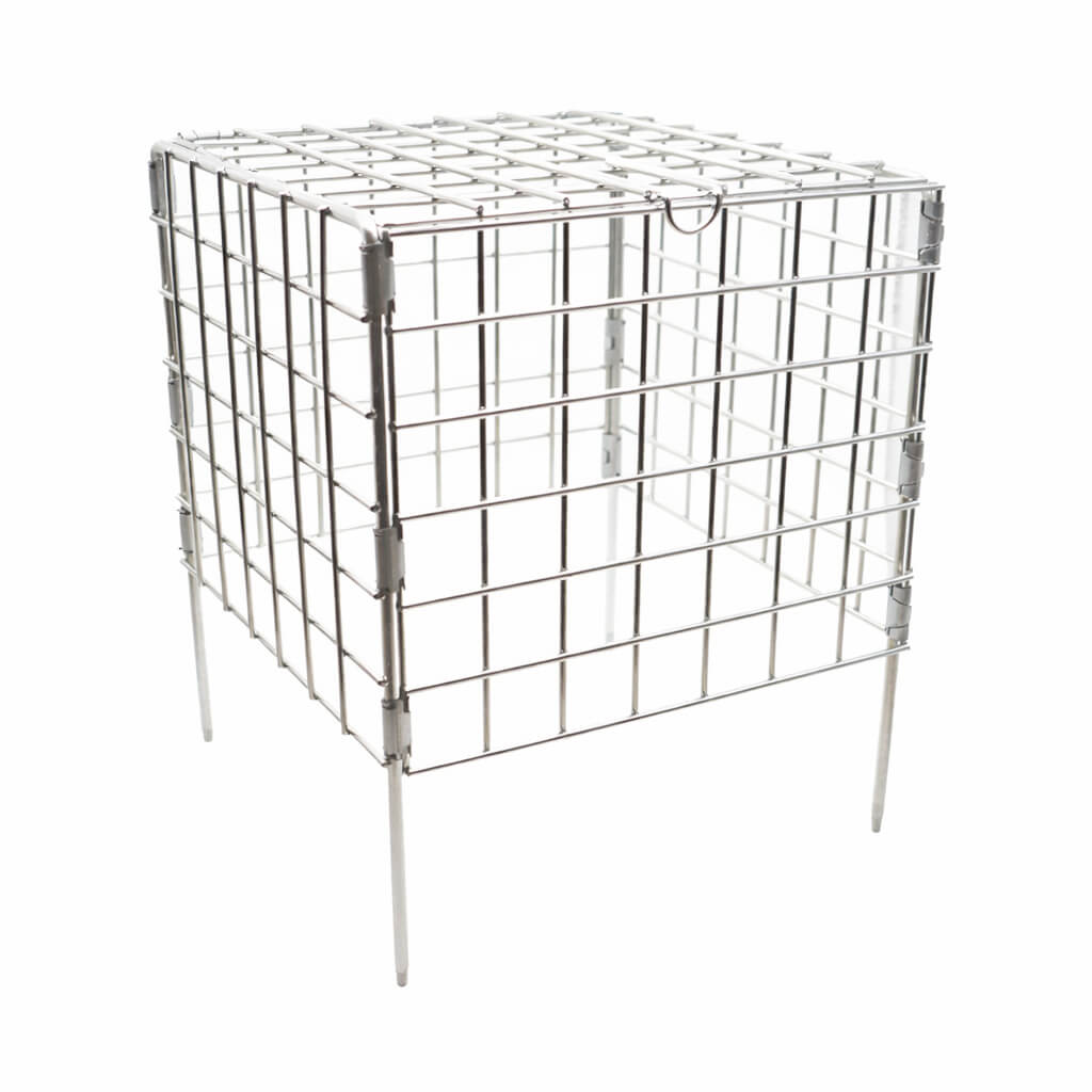 Denna robusta skyddsbur är utformad för att täcka både sork- och mullvadsfällor och förhindra att obehöriga eller tamdjur kommer i kontakt med fällan. Med sin konstruktion av svetsat nät och integrerade markspett placeras den enkelt över fällan och fixeras stabilt i marken. Den tydliga signalfärgen på toppen gör buren synlig ovan jord och minskar risken för oavsiktlig kontakt.
