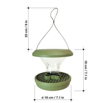 Denna fågelmatare är en innovativ lösning för att mata fåglar utan att locka till sig skadedjur som råttor eller ekorrar. Mataren är utrustad med en smart design som gör att endast fåglar kan komma åt fröna, vilket minimerar spill och förhindrar att andra djur äter upp maten.