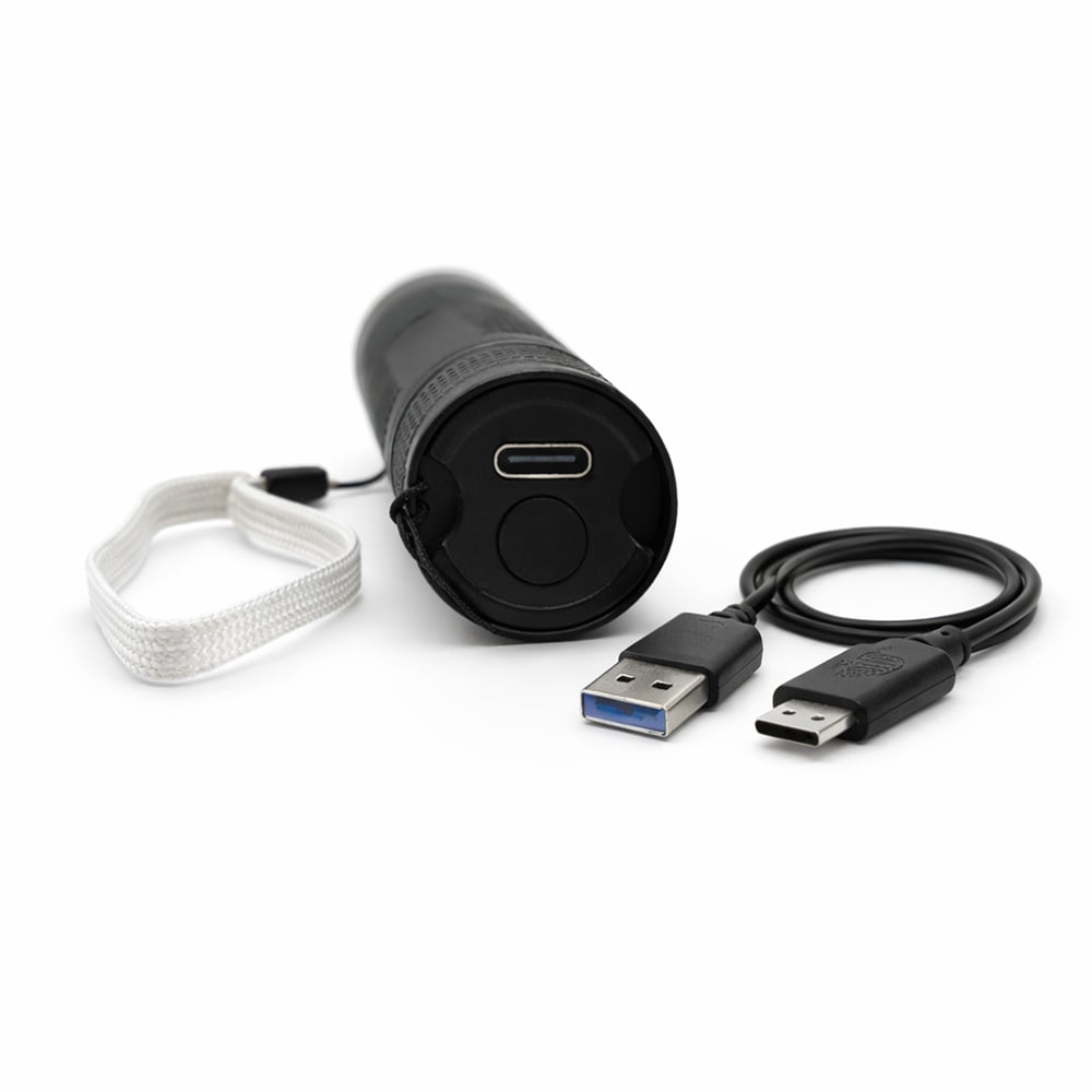 - Laddas enkelt med medföljande USB-C till USB-A-kabel