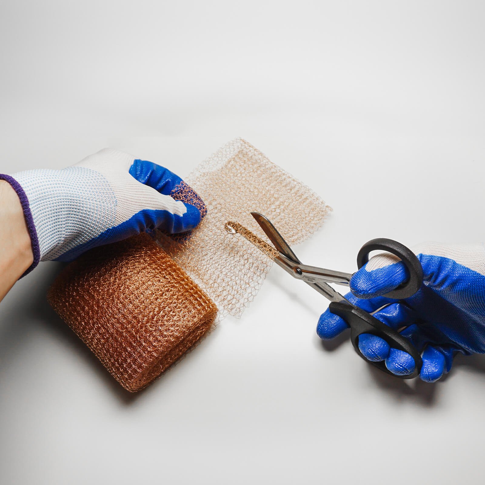 Klipp till materialet (kopparnät eller stålull) med saxen till önskad storlek.